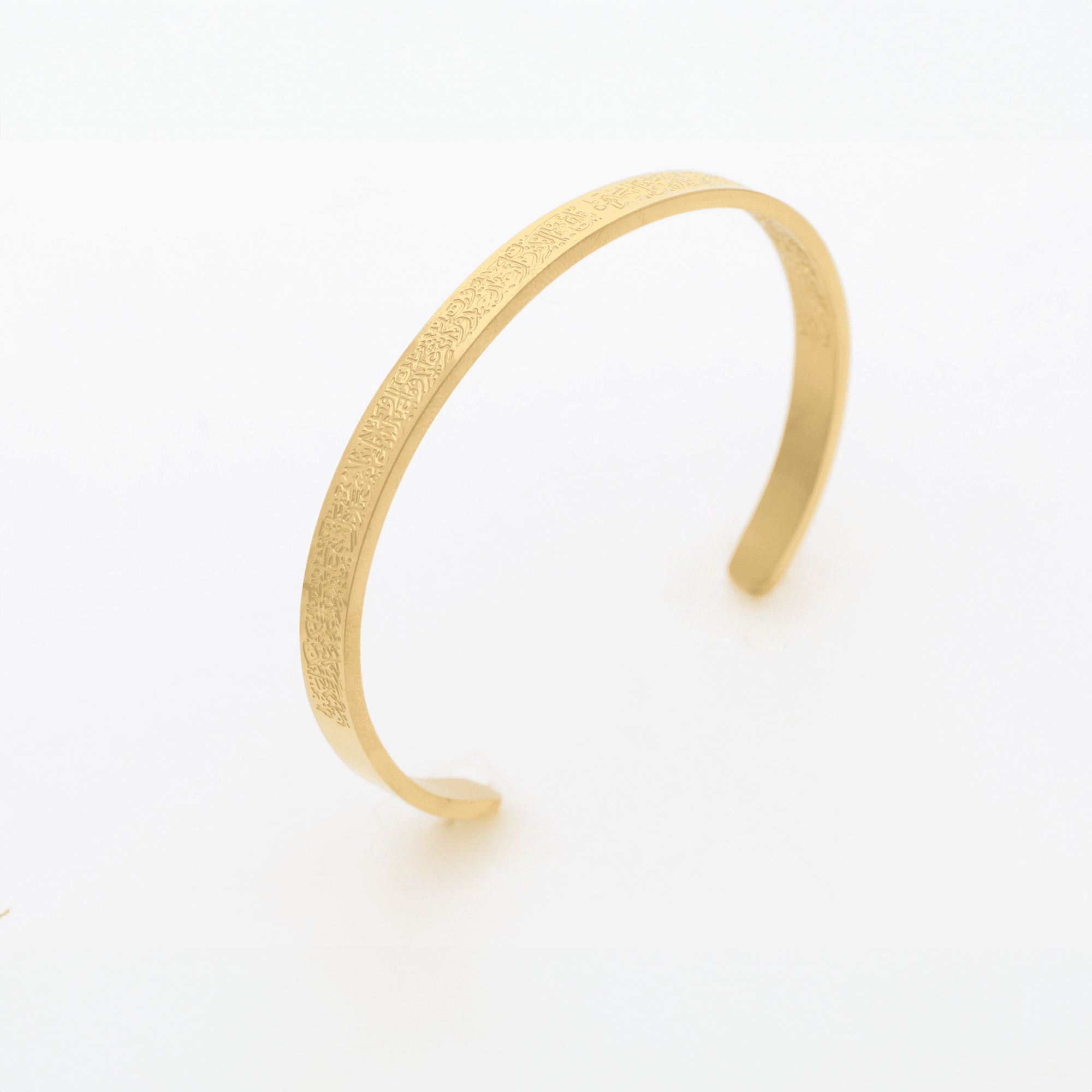 Eines der am meisten angefragten Stücke in der Geschichte des Unternehmens. Dieses wunderschöne Design auf unserem neuen Armreif zeigt die vier Surahs des Qur'an, die mit 'Qul' beginnen, in einem handgezeichneten Kalligrafie-Stil, wie wir ihn noch nie zuvor veröffentlicht haben.