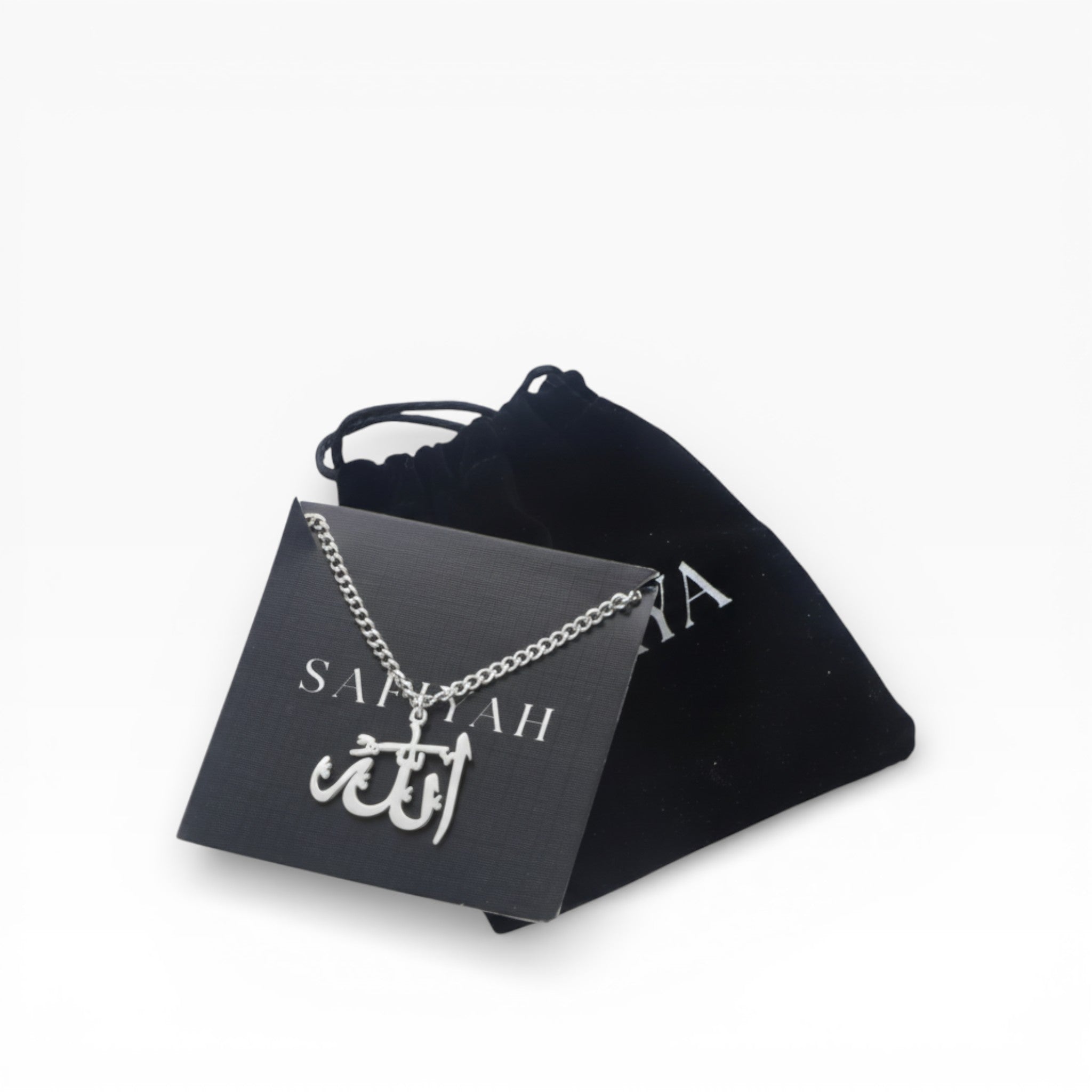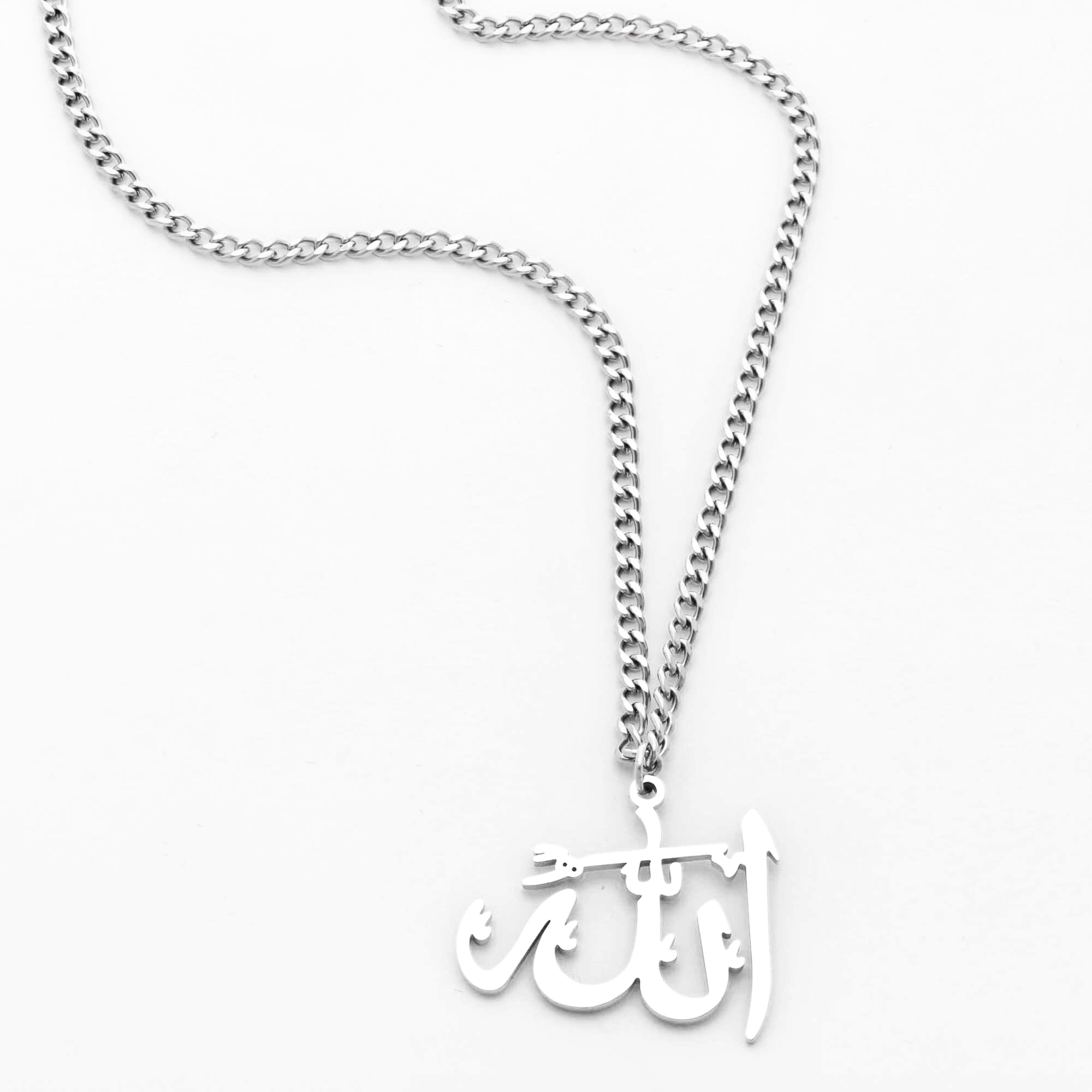 Die lang ersehnte Allah-Halskette ist endlich angekommen. Welches bessere Statement-Stück könnte man tragen als eines mit Allahs Namen als Erinnerung? Dieses wunderschöne Stück ist in seinem Design kühn, um für sich selbst zu stehen, wenn es getragen wird, und vervollkommnet jedes Outfit, sei es elegant oder leger.