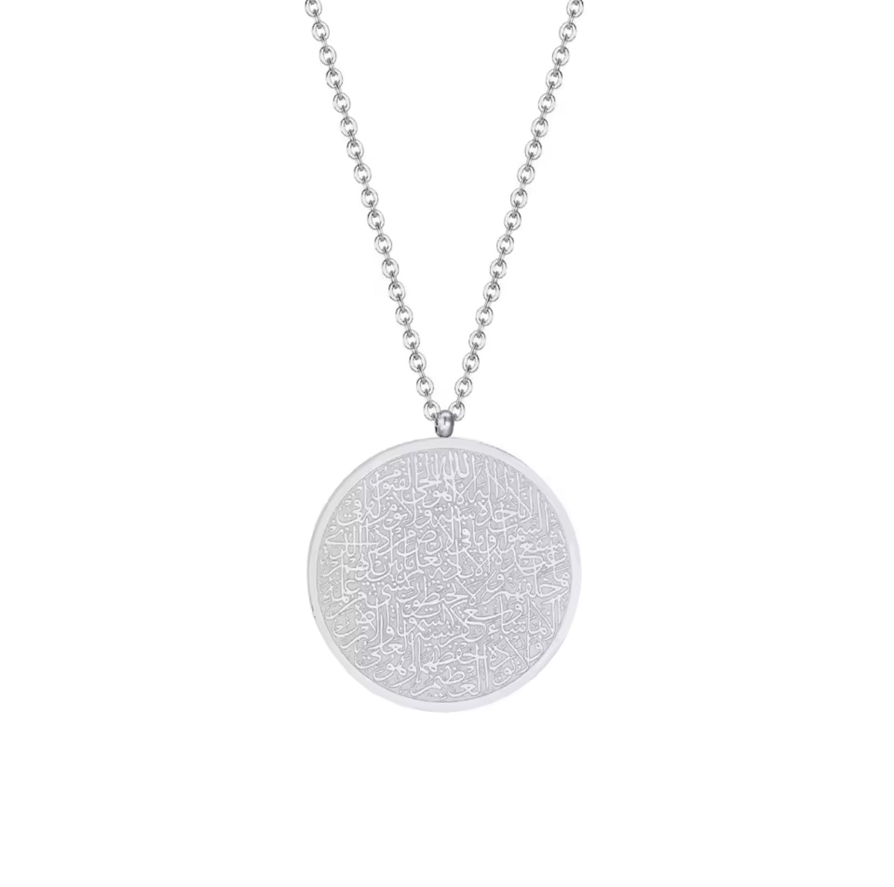Ayatul Kursi Halskette - Silber Der Ayatul Kursi gilt als der kraftvollste Vers im Koran und ist dafür bekannt, Schutz und Sicherheit zu bieten. Diesen wunderschönen und bedeutungsvollen Vers in unseren Schmuck zu integrieren, hat sich bei Hira als absoluter Favorit erwiesen. Wir freuen uns, ihn nun auch in unsere Halsketten-Kollektion aufgenommen zu haben.