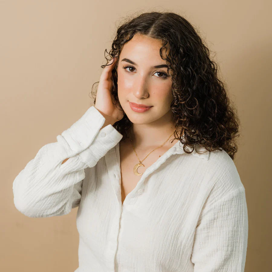 Die Verbindung eines positiven Verses und des Symbols des Mondes ist die perfekte Kombination. "Gewiss, mit der Schwierigkeit kommt die Erleichterung" ist eine der beruhigendsten und freudvollsten Erinnerungen in Zeiten des Kampfes. Da der Mond Licht und Orientierung in dunklen Zeiten symbolisiert, hoffen wir, dass diese wunderschöne Kombination des Verses und der Mondsichel eine schöne und hoffnungsvolle Erinnerung für Sie darstellt und eines Ihrer schönsten und einzigartigsten Accessoires wird.