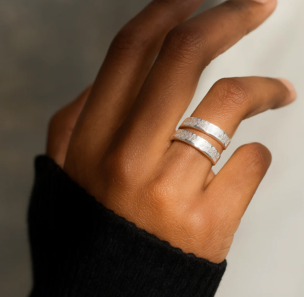 Die Einheitsgröße passt wirklich für alle. Anpassbar für jeden Finger. Sie brauchen sich keine Gedanken über Messungen zu machen. Der Ring kann an jedem Finger angepasst werden. Wenn Sie keine gute Passform finden, reichen Sie eine Anfrage ein, und wir erstatten Ihnen den Kaufpreis.