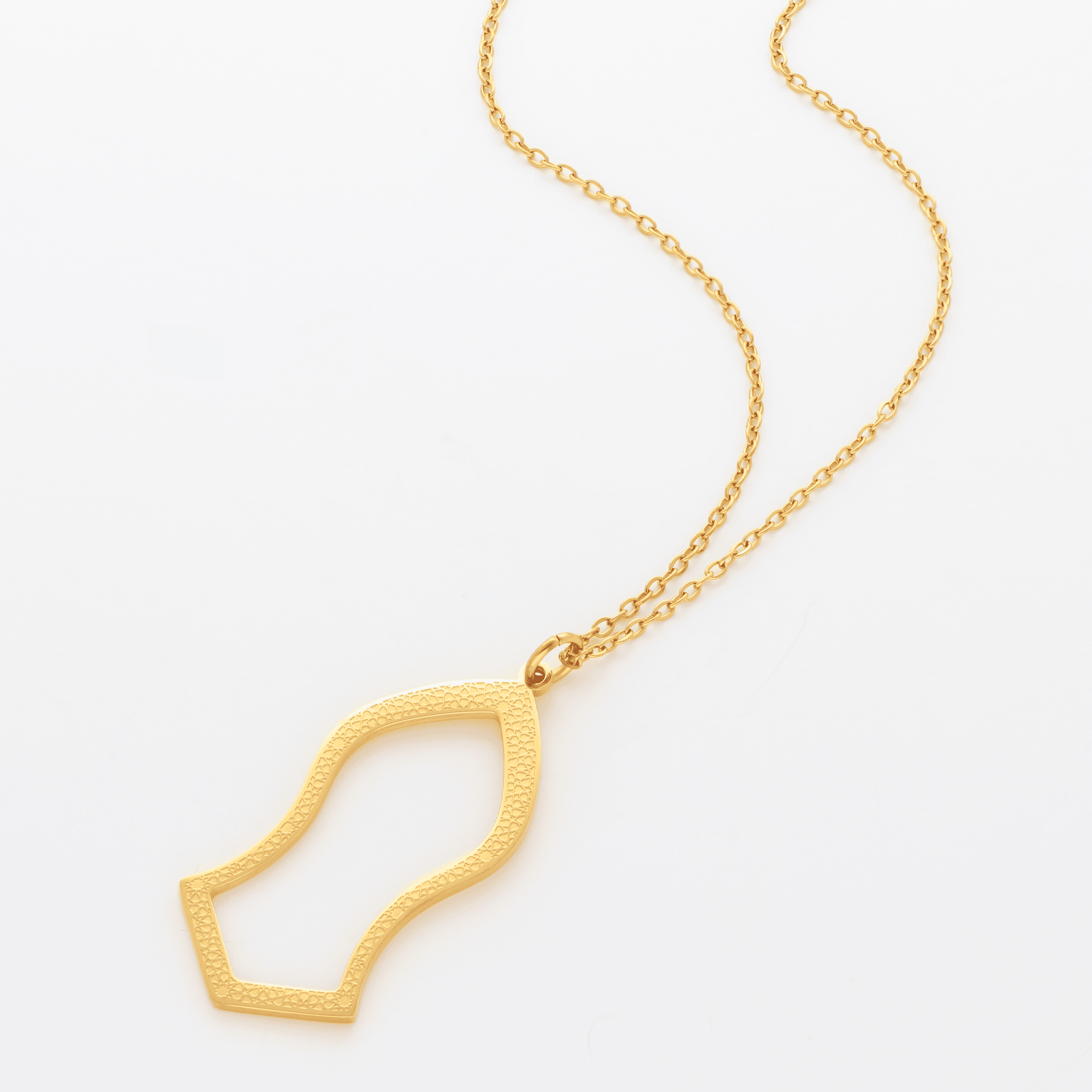 Die Nalain-Halskette ist ein elegantes Schmuckstück, die filigrane goldene Kette hält einen kunstvoll gestalteten Anhänger, der die charakteristische geschwungene Form des Nalain-Abdrucks nachbildet. Das feine, detaillierte Muster des Anhängers verleiht der Halskette eine edle und zeitlose Anmutung. Diese Halskette ist nicht nur ein Ausdruck tiefer spiritueller Verbundenheit, sondern auch ein stilvolles Accessoire, das jedem Outfit eine besondere Note verleiht.