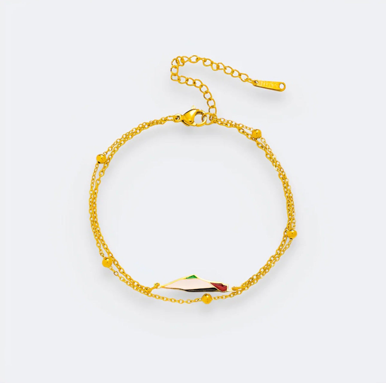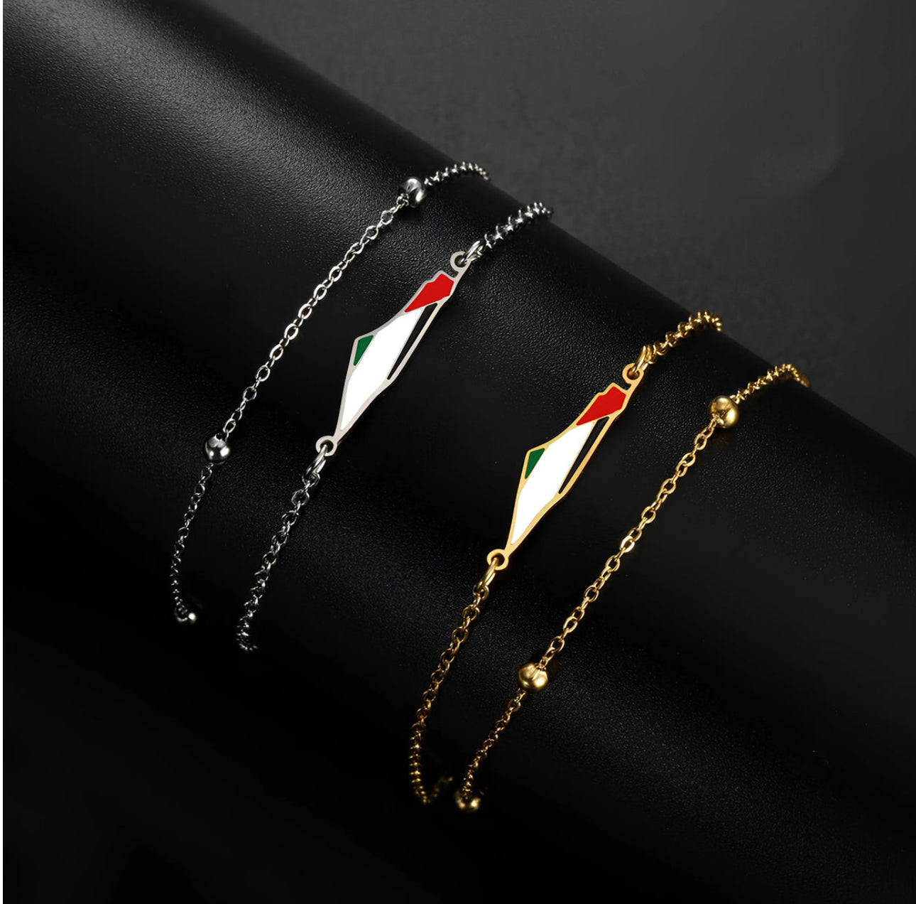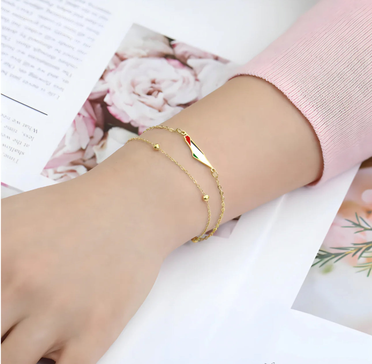 Zeige deine Verbundenheit mit Palästina – dieses elegante Armband ist mehr als nur Schmuck. Es symbolisiert Stärke, Liebe und Hoffnung und begleitet dich jeden Tag als Erinnerung an die Geschichte und Kultur Palästinas.