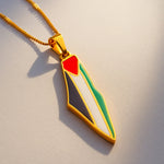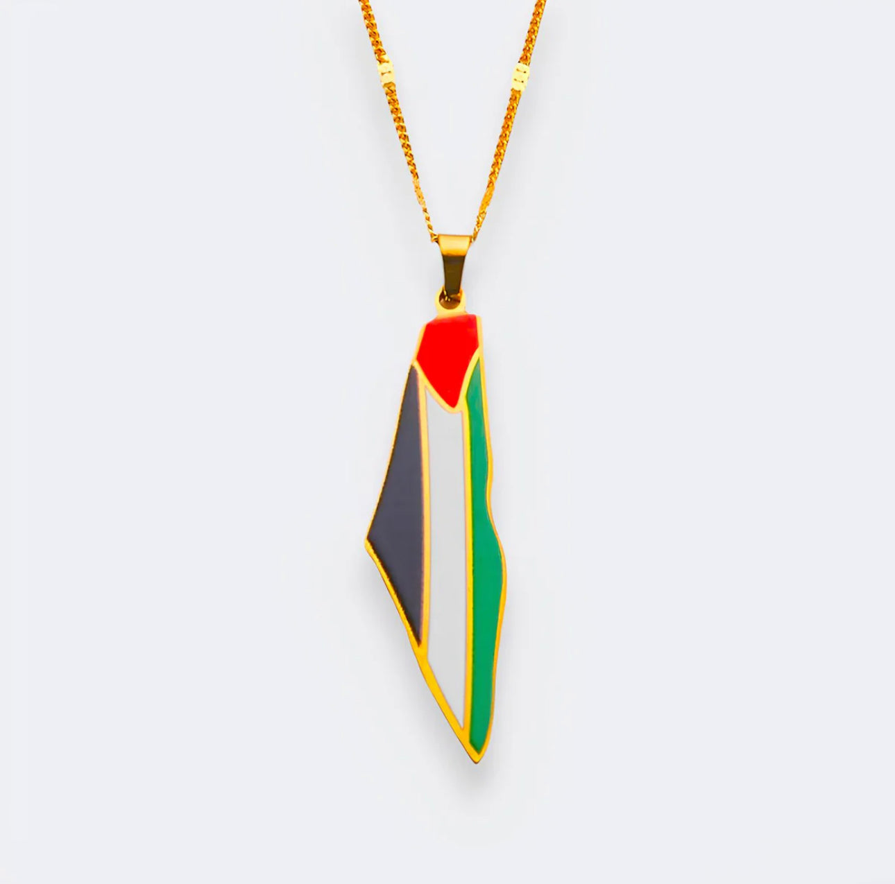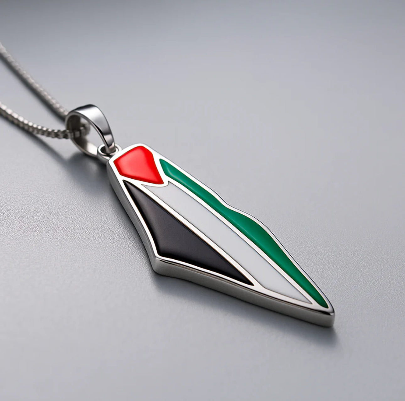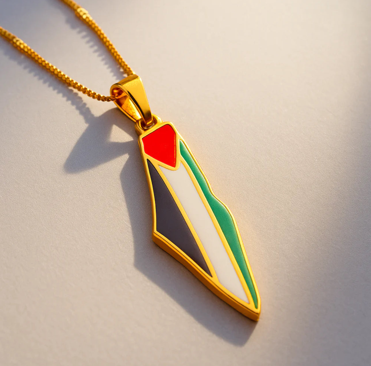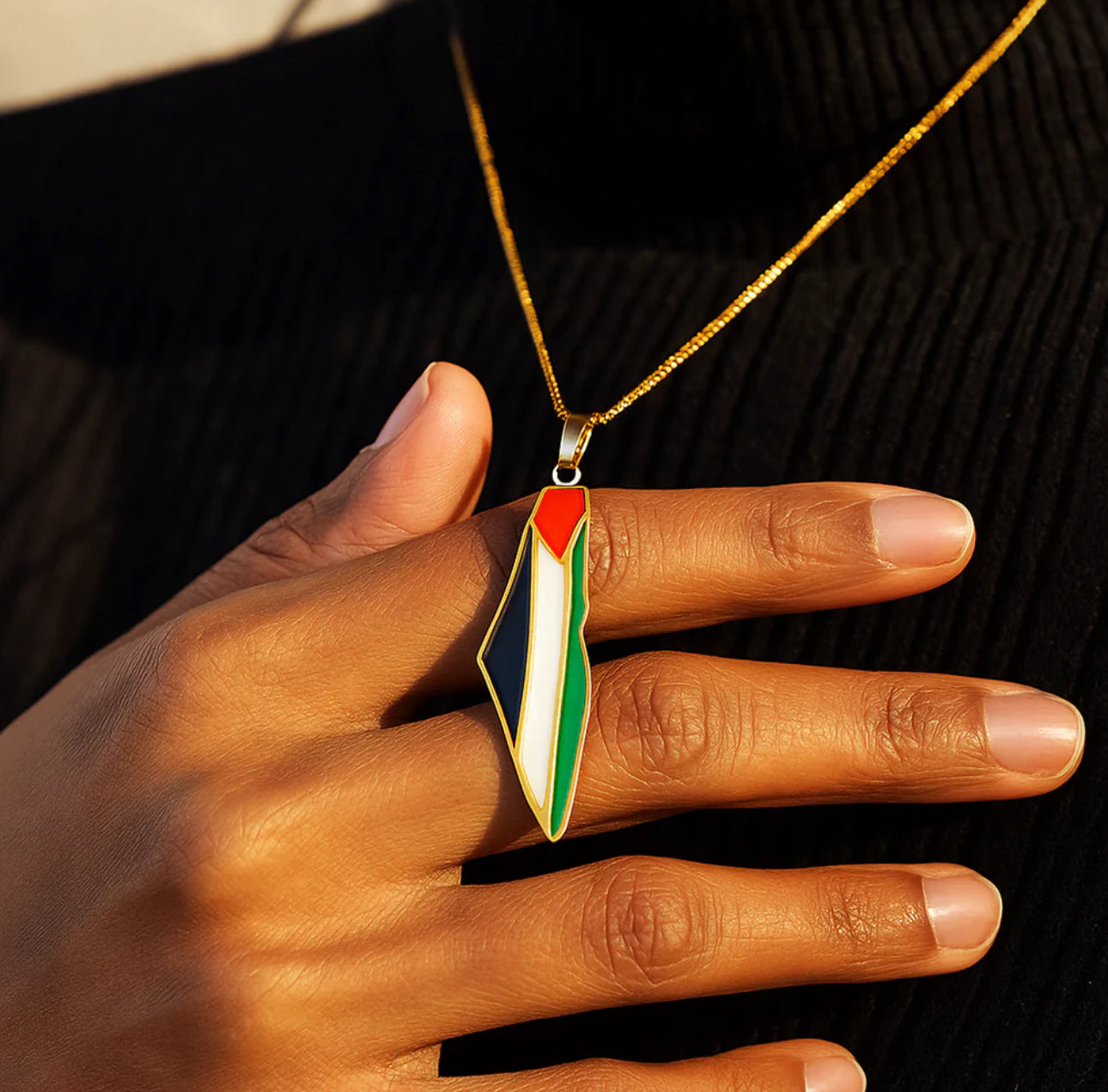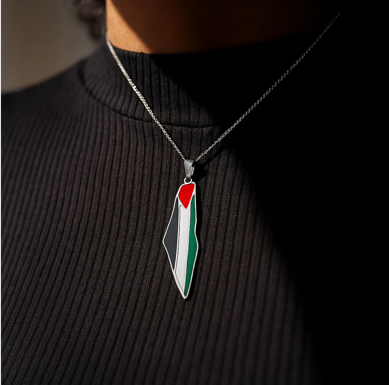 Diese elegante Halskette in Form der Palästina-Karte steht für Hoffnung, Stärke und Zusammenhalt. Ein starkes Statement – für dich oder als bedeutungsvolles Geschenk.